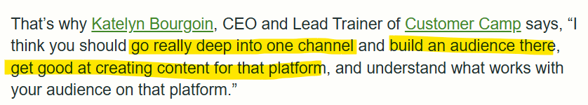 Katelyn Bourgoin nailed this: she built one channel first (Twitter → “Why We Buy” newsletter) and only then expanded to LinkedIn 2 years later.