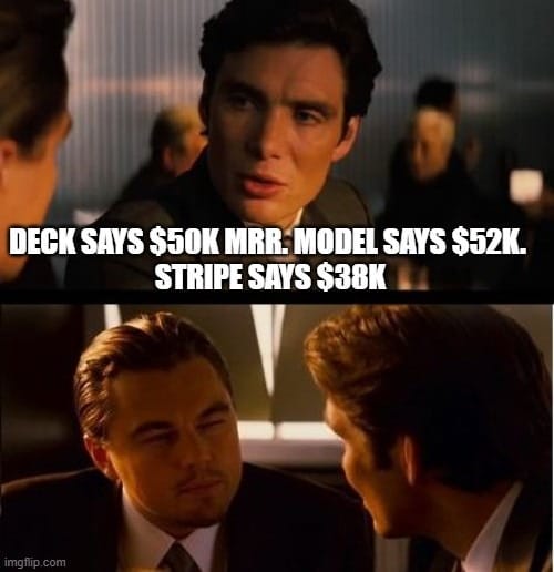 Pick a few headline numbers: ARR/MRR, customers, growth, burn, runway, and make sure they are identical across your deck, your model, and your actual data.
